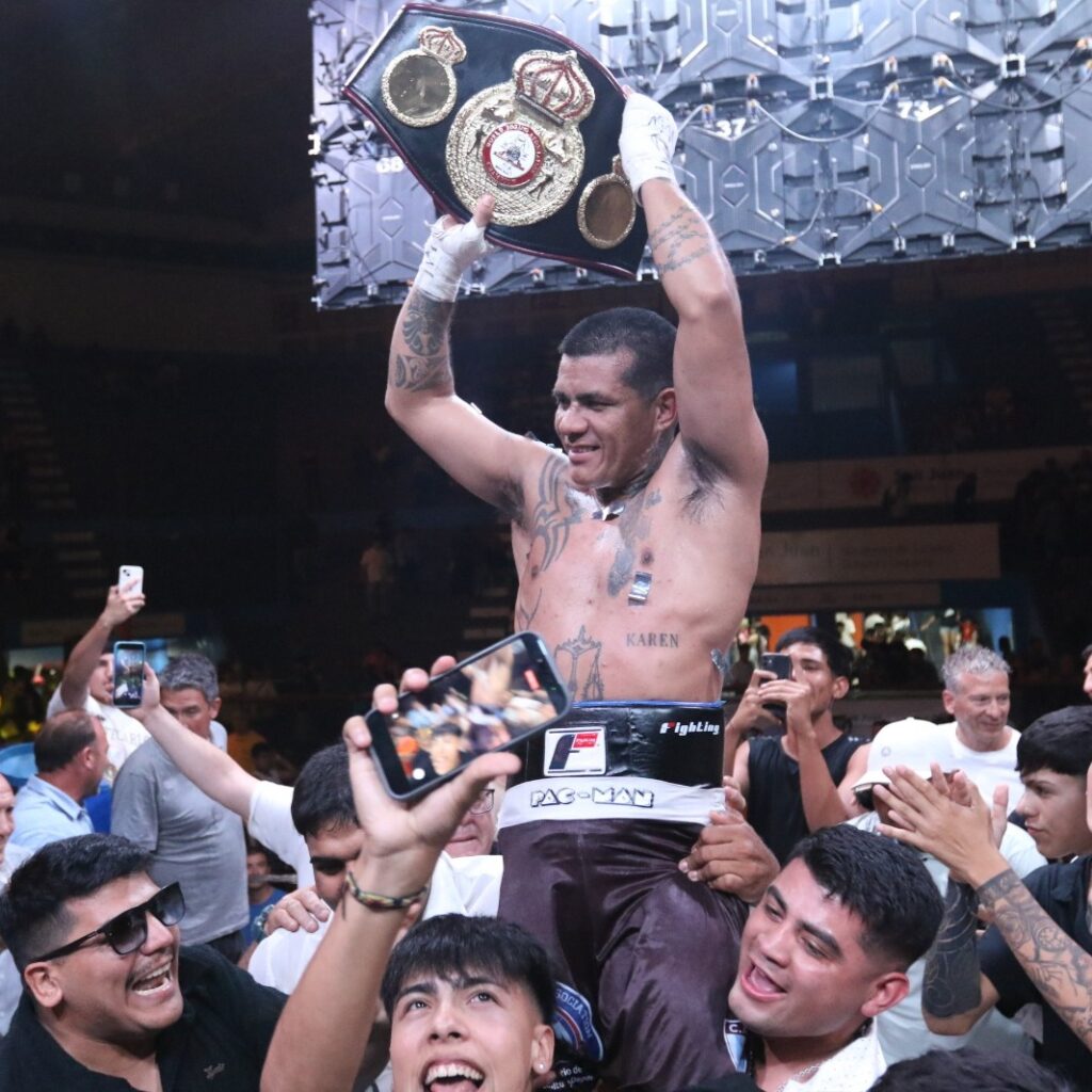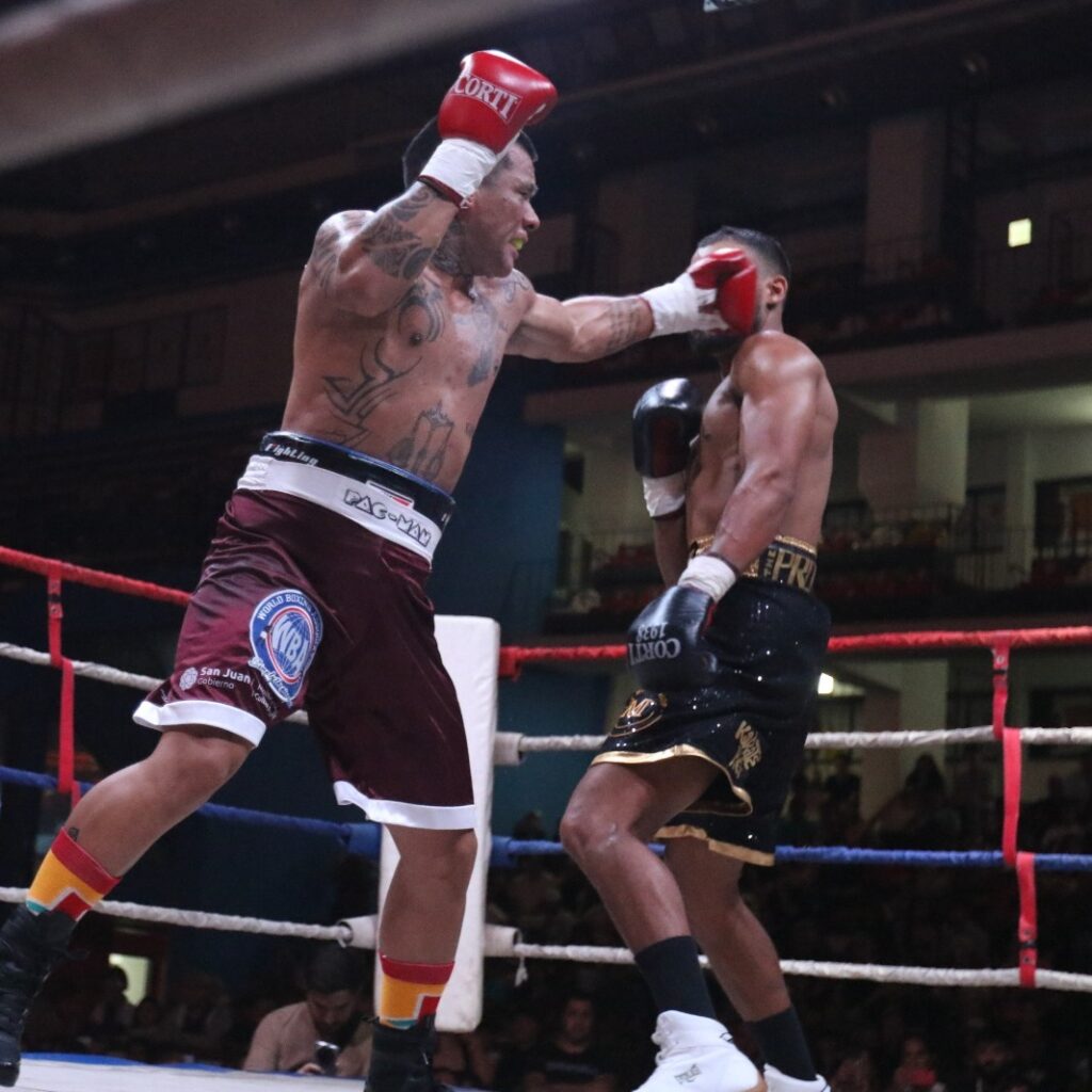 El combate de fondo tuvo como protagonistas a Ezequiel “Pacman” Fernández y al venezolano Rodrigo Caraballo, quienes disputaron el Título AMB Gold en una pelea de gran intensidad que elevó la jornada al plano internacional. El evento fue organizado por el Club Julio Mocoroa y acompañado por el Gobierno de San Juan.